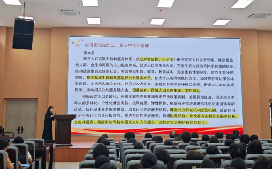 孙维权带领员工干部群体,从党的二十届三中全会的基本情况、习近平总书记在党的二十届三中全会上的重要讲话等方面进行了系统且高度的解读学习。随后,辅导员张渝佩就《中共中央关于进一步全面深化改革推进中国式现代化的决定》面向员工干部开展专题学习分享。