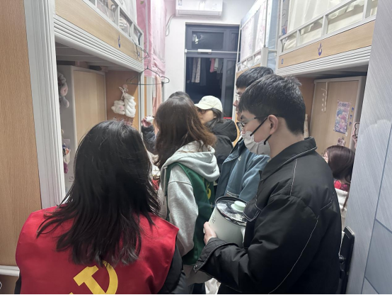 在与同学们交流时,学工副经理郑卓琳与辅导员耐心地讲解了安全知识,强调了宿舍安全的重要性,提醒大家提高安全意识,时刻保持警惕,杜绝侥幸心理。员工干部也充分发挥模范带头作用,积极协助辅导员开展工作,认真记录检查情况,并向同学们宣传宿舍安全管理规定。